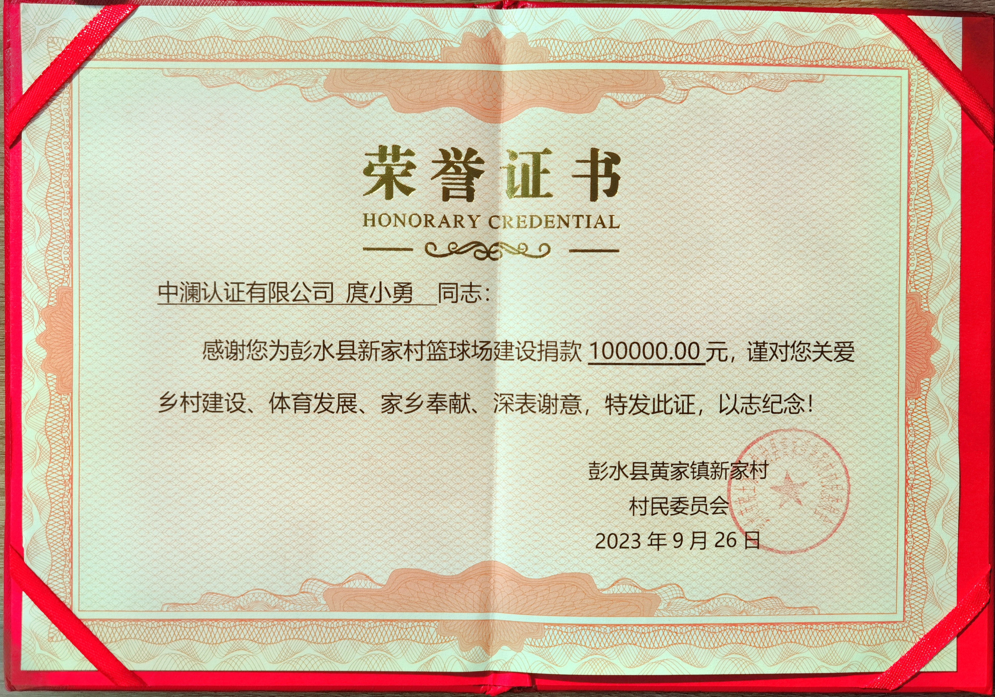 中澜认证有限公司捐建乡村篮球场,仅仅是热心公益事业的一个缩影。事实上,中澜认证4年间已为社会总计捐赠15万余元了,早在2020年的新冠疫情,及河南汛情,多年来参与多次慰问孤寡老人及贫困资助,并与2021年已设立爱心基金,主要资助困难学生、并出台爱心基金申请要求条件,旨在倡导人人献爱心,传承互帮互助的传统美德。